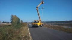 菏澤建設(shè)東道自彎臂路燈安裝現(xiàn)場(chǎng)
