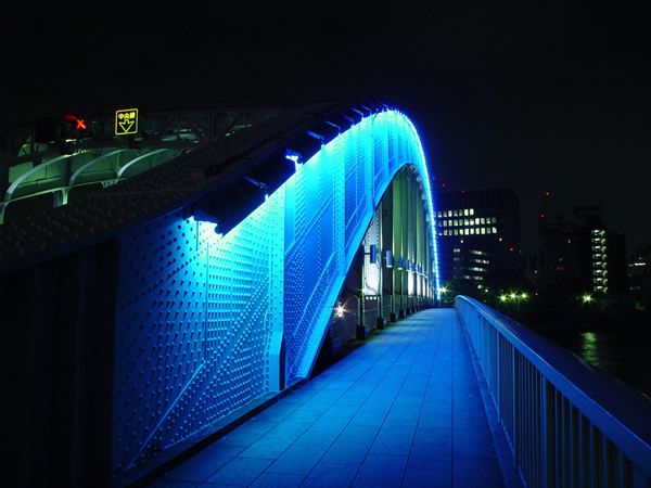 照明了,而是由點(diǎn)光源組成的彩虹橋,按照事先編好的走燈程序,十幾座
